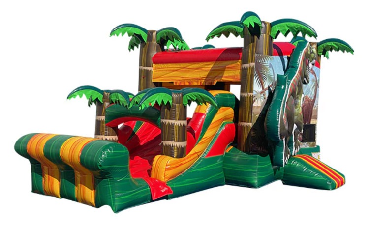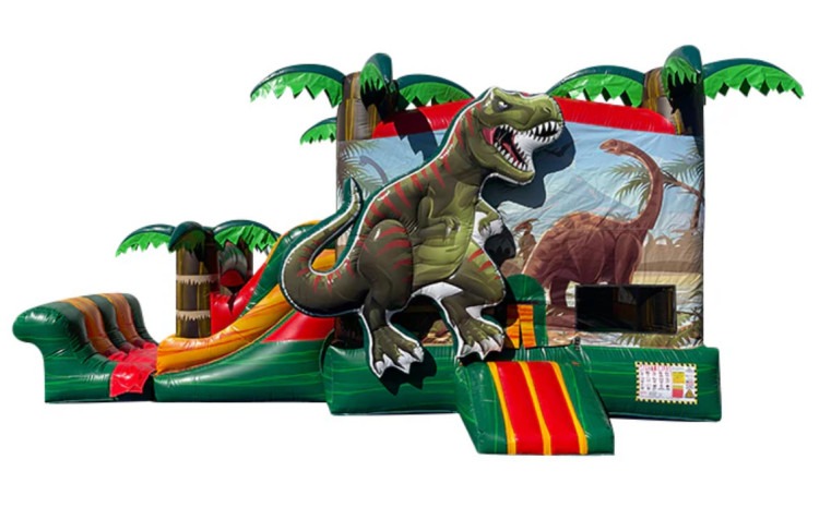 DINOSAUR COMBO: A towering inflatable adventure that combines a spacious bounce area, an exciting slide, and playful dinosaur-themed graphics for hours of active fun. Designed for kids who love big roars and bigger jumps, this rental offers a safe, cushioned bouncing surface, mesh side panels for visibility and airflow, an easy-access climb to the slide, and a gentle landing zone. Perfect for backyard parties, school events, or themed celebrations, the Dinosaur Combo keeps children engaged with varied play options while giving adults peace of mind thanks to its enclosed design and clear sightlines. Suitable for a range of ages, it delivers a dynamic, eye-catching centerpiece that brings prehistoric excitement to any event.